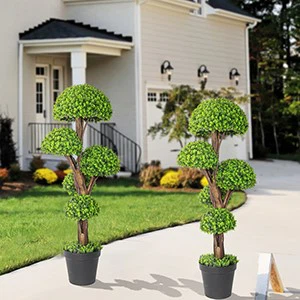พืชประดิษฐ์กลางแจ้ง Faux Boxwood Topiary Ball Tree พร้อม ...เพิ่มเติม
